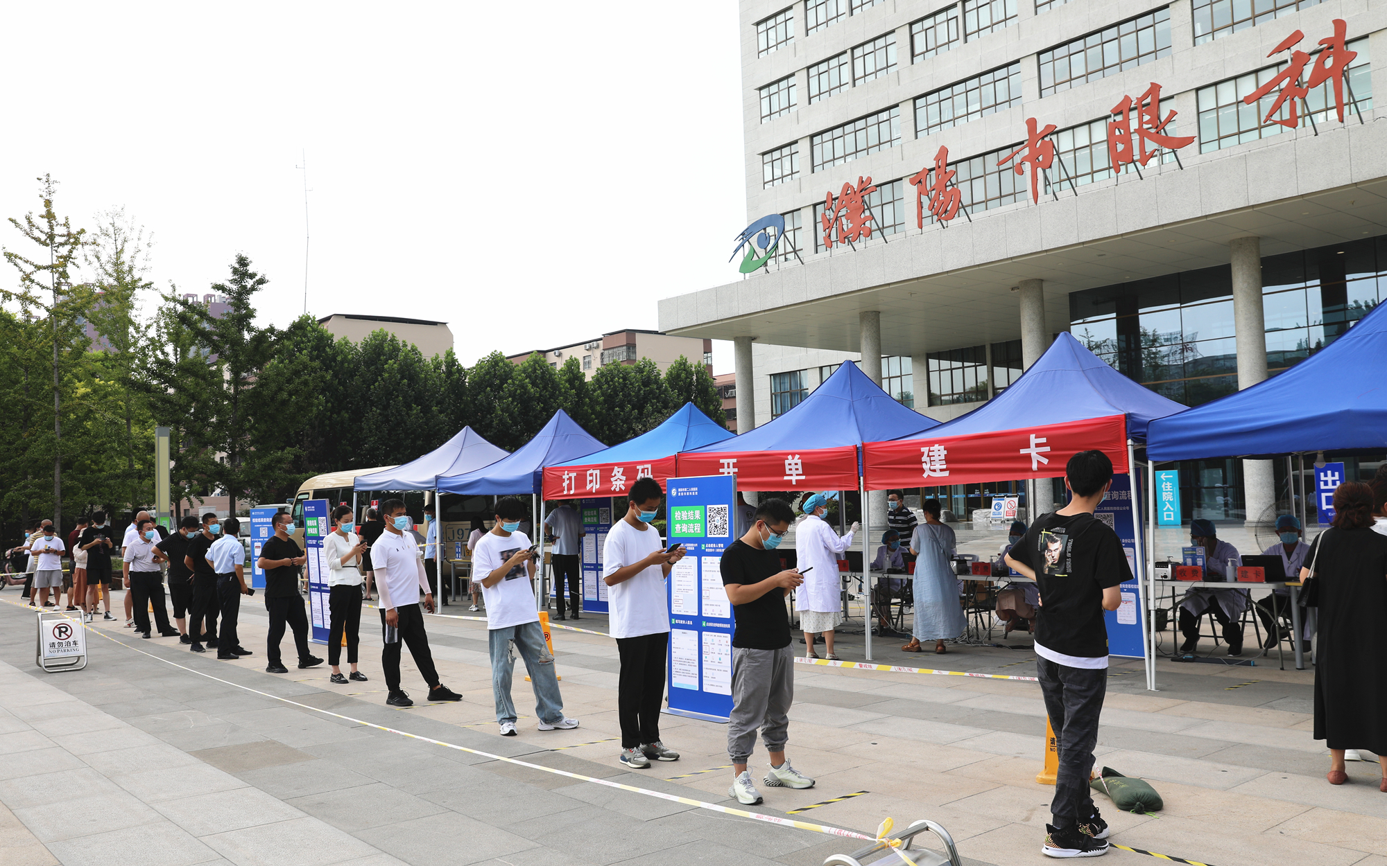 8月3日早上5時(shí)00分,按照應(yīng)檢盡檢、即測即走、通風(fēng)良好、保障安全、“一米線”等防控原則,濮陽市眼科醫(yī)院(市二院)設(shè)置新型冠狀病毒核酸采樣點(diǎn),并科學(xué)劃分建卡交費(fèi)、開單檢測、條碼打印、核酸采集、垃圾暫存區(qū)等各檢測區(qū)域,細(xì)化各區(qū)域人員分工,精準(zhǔn)設(shè)置新型冠狀病毒核酸檢測路線。